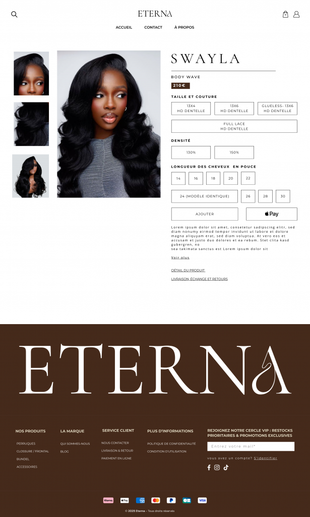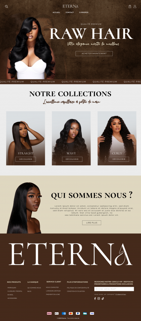 J’ai créé une maquette de site web pour une marque de perruques, pensée pour mettre en valeur les produits et l’expérience client.